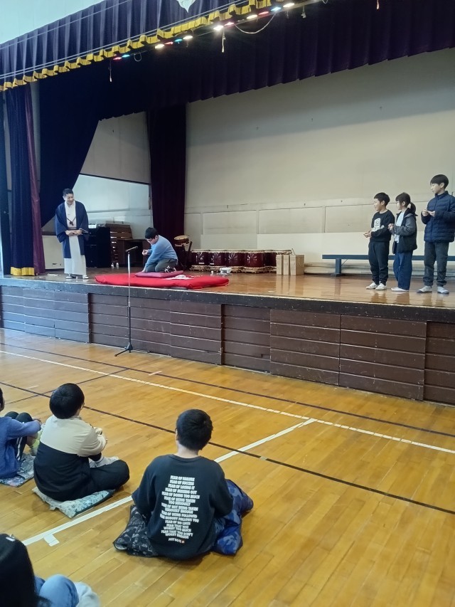 今日は落語家の桂文ぶん師匠にご来校いただき、落語の披露やしぐさの体験をしました。