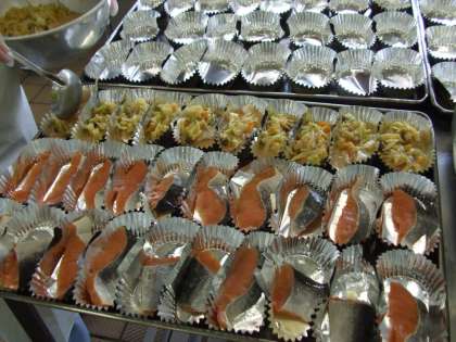 今日は北海道産の鮭の上に、みそとバターで味付けした野菜を乗せて焼きました。