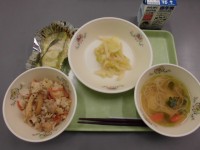 材料を炒め煮し、炊き上がったごはんに混ぜます。