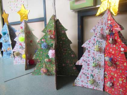 並べられているクリスマスツリーが、やまほうしで学ぶ子たちの頑張った証として、誇らしくとてもまぶしく見えました。