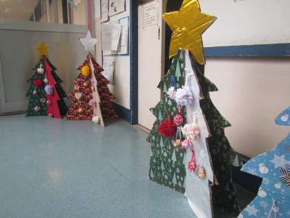 特別支援教室やまほうしの教室前に素敵なクリスマスツリーが飾られています。