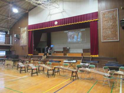 明日の保護者会に向けて(他の学年への発表も合わせて行います。)6年生のリハーサルを見ました。(写真・担任二人と保護者有志の方とでリハーサル)