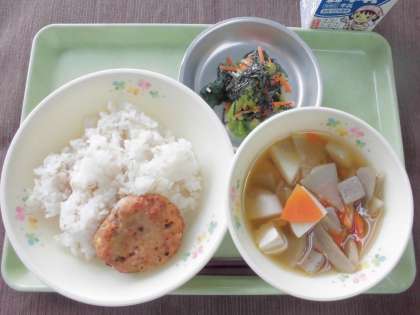 麦ごはん・ツナのさんが焼き・けんちん汁・のり和え・牛乳