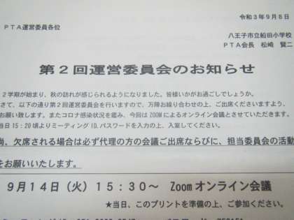 9月14日(火)オンラインで第2回PTA運営委員会が開催されました。