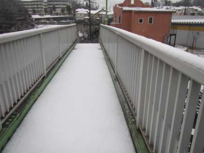 結構積もっていて、階段も狭いのですべらないよう、川合副校長先生と二人で雪かきしました。