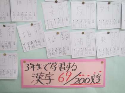 写真上:3年生 一日一日を大切に、たくさん習う漢字も「コンプリート」して次の学年に臨みます。
