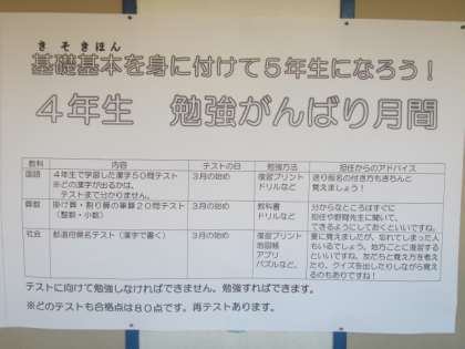 「学年のまとめ、やり残しのないようにがんばっていますか?」と、写真を掲示して、それぞれの取り組みを紹介しました。