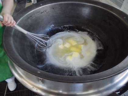 写真は、バターチキンカレーのルーを作っている写真になります。