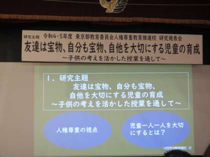2月8日(木)府中市立府中第9小学校へ人権尊重教育推進校(人尊校※)の研究発表会に参加してきました。