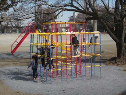 遊具が新しくなり、ピカピカ、つるつる、カラフルな遊具で楽しそうに遊ぶ姿が見られました。