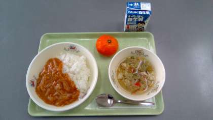本日は、キャベツとにんじんが八王子市でとれた野菜になります。キャベツのスープに入っています。