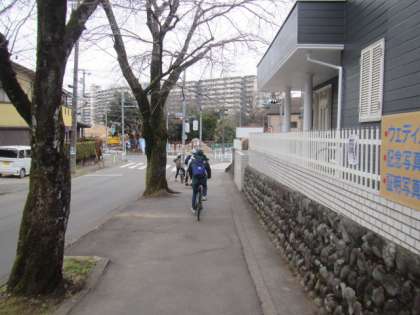正門前の坂を下り(写真上)、高尾街道を通りました。(写真中・下)