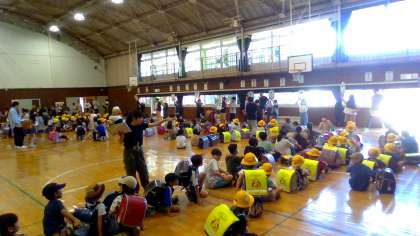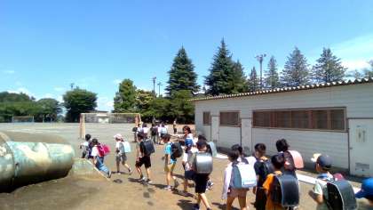 コース別のグループに分かれ、下級生と上級生が一緒に下校します。
