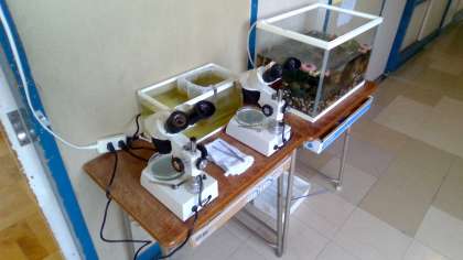 5年生メダカの観察コーナーです。自主的な学びを促すため、メダカの水槽の近くにはメダカのたまごをじっくり見ることができるコーナーがあります。休み時間や5分休みなどちょっとした時間が学びになるのはよいですね。