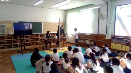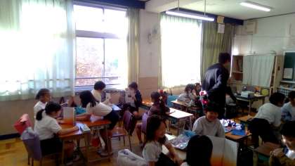 グループで文章を出題者がわざと間違えたところを他の人がよく聞いて「ダウト」と見付ける活動です。時々、楽しい活動をすることで、子供たちも集中し、さらに文章についてさらに関心を持たせることができます。とても楽しそうです。