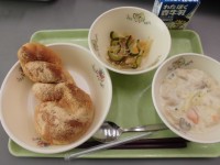 *献立名* ・きなこ揚げパン・白菜のクリーム煮・じゃこサラダ・牛乳 白菜の...