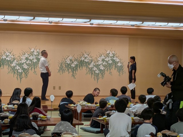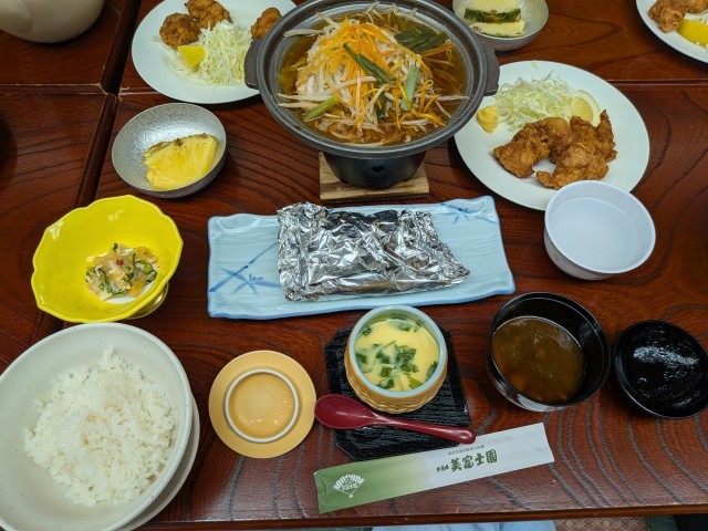 待ちに待った夕食です。宿の方にご挨拶をした後、「いただきます」です。豪華な夕食でテンションが上がります。なかには5杯おかわりするつわ者も。宿の皆様、おいしい食事をありがとうございます。