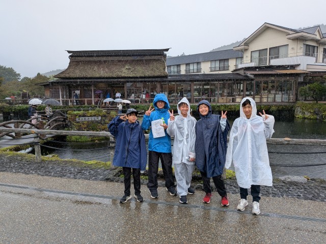 雨の中、生徒はよく頑張りました。次は民宿でほうとう作りです。冷えた体を一気に温めます。