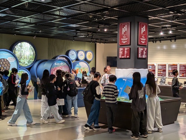 富士山自然体験教室の最後の見学地である富士山世界遺産センターに到着しました。