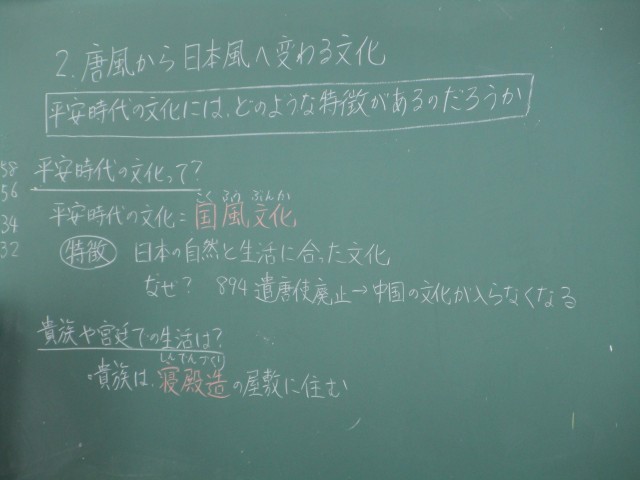 本時の目標は「平安時代の文化には、どのような特徴があるか理解する」です。