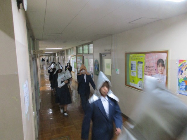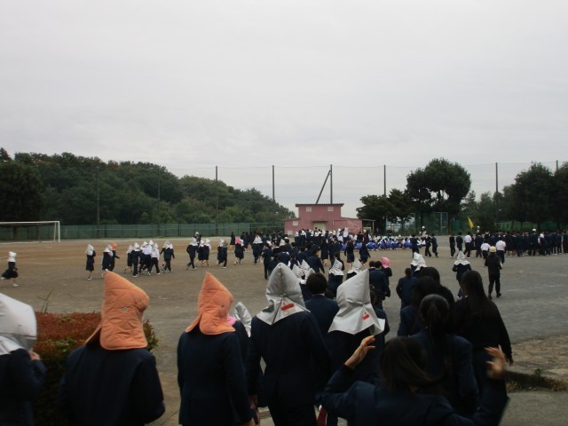 授業時間における火災対応を想定し、校庭に避難しました。出火元の想定は3階調理室です。全員速やかに校庭に避難しました。校庭全員の点呼が終わるまで、約6分でした。次回の避難訓練では、もっと早く避難できるように、全員で意識しましょう。