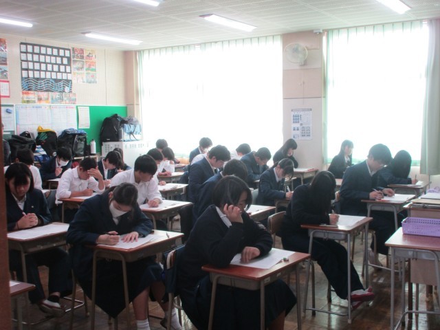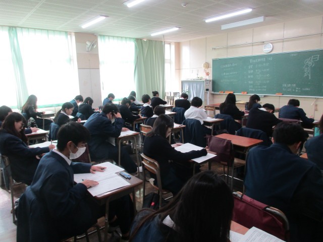 本日は、第3回 定期考査の1日目です。国語(50分間)、英語(50分間)、保健体育(30分間)のテストを実施しました。日頃の学習の成果が結果に表れることを期待しています。