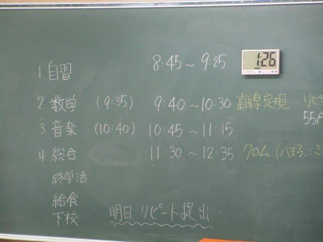 本日のテストは、数学(50分間)音楽(30分間)です。また、総合的な学習の時間では「はちおうじっ子ミニマム」をchromebookで実施しました。体調が万全でない状態でテストに臨まなければならなかった生徒もいたことでしょう。週末、しっかり休んでください。石川中生、テストお疲れさまでした。