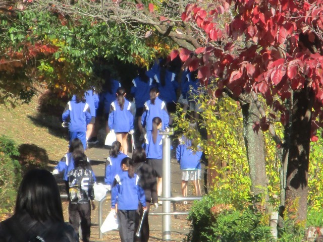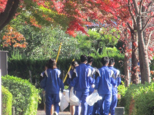 青少対石川地区委員会が主催するクリーン活動に、たくさんの生徒が参加してくれました。吹奏楽部やサッカー部、バドミントン部、バスケットボール部の生徒が参加しました。また、宇津木台小と小宮小の児童・保護者もたくさん参加してくれました。1時間程度の活動でしたが、きれいな街並みを、より一層きれいにしてくれました。紅葉がとても美しいです。