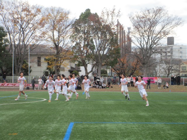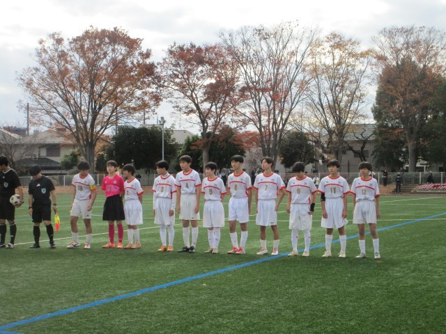 第69回 東京都中学校サッカー新人大会 準々決勝が、日野陸上競技場で行われました。対戦相手は1支部の青陵中学校です。前半は思うようなプレーができず0-0で終了。後半はミドルシュート、CK(直接ゴール)、キーパーとの1対1をゴールに流し込み、3得点。1失点はしたものの、3-1で勝利しました。これで、都大会ベスト4が決まりました。公立学校ではナンバー1です。保護者の方々、3年生、卒業生、在校生、応援ありがとうございました。