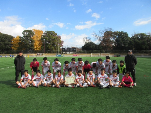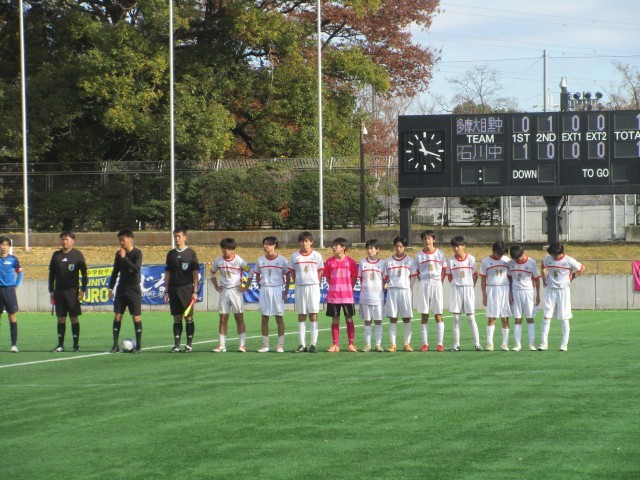 前半終了間際、石川中がFKから直接ゴールネットを揺らし、先制点。前半を1-0で折り返しました。後半残り7分、多摩大目黒中、CKからヘディングで合わせられ、同点に追いつかれてしまいました。後半0-1、計1-1。延長戦は0-0で終了し、PK戦までもつれ込みました。PK戦は10名蹴って、結果は7-8で敗退しました。ナイスゲームでした。