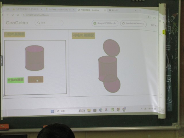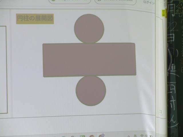 各自で考え、デジタル教科書の動画を観て、答え合わせをしました。立体が切り取られ、平面になっていく様子がよく分かります。