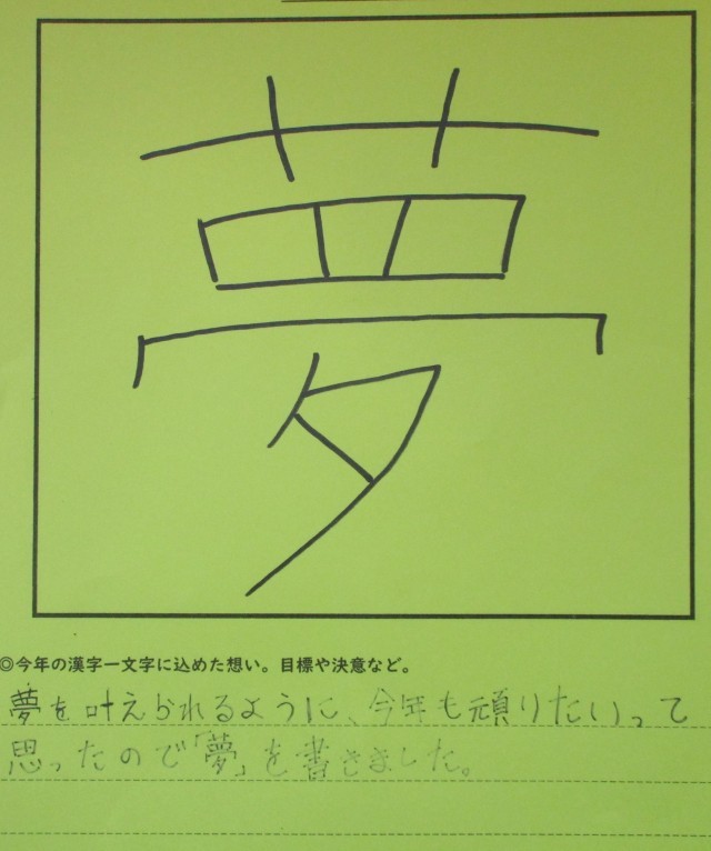 今年の漢字一文字に込めた想いや目標、決意などが合わせて書かれています。