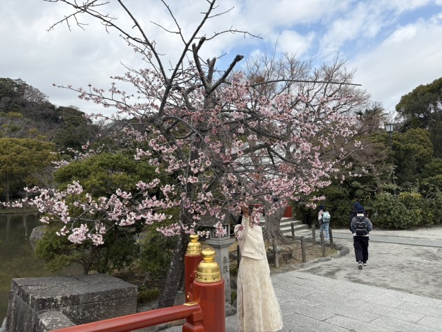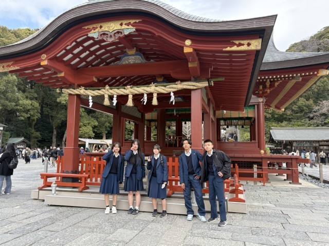 鶴岡八幡宮はチェックポイントになっているので、たくさんの班が参拝に来ました。