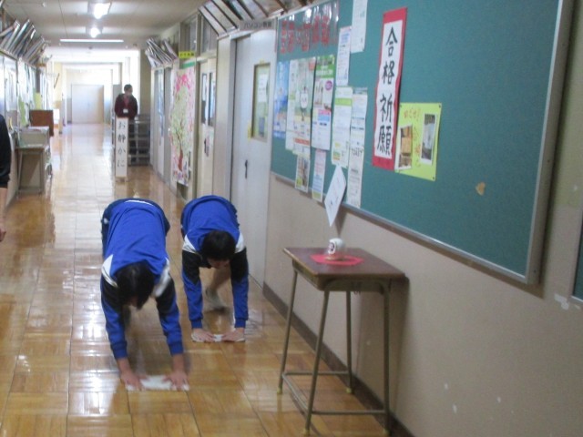 給食後、3年生は清掃奉仕活動を行いました。3年生の教室や廊下、階段、校庭などを丁寧に清掃してくれました。3年間を思い出しながらの清掃になりました。感謝の気持ちを忘れずに。