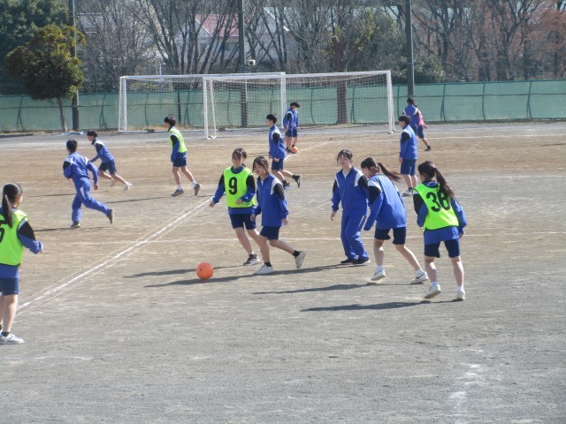 今学期最後の授業は「サッカー」です。レベル別にグリッドを分けて、4to4のミニゲームを行いました。石川中は、男女ともにサッカー好きの生徒が多いです。大いに盛り上がりました。
