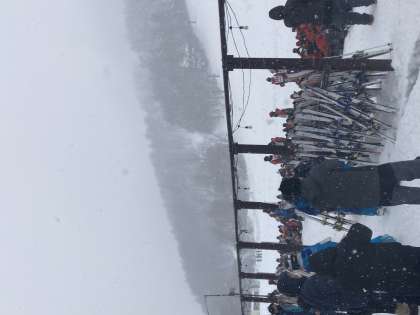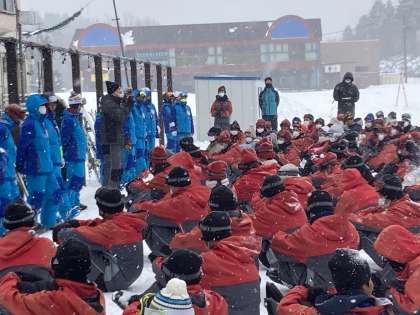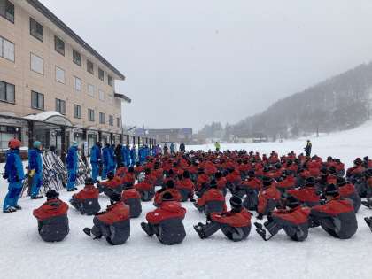 閉講式の様子です。雪の中、みんなしっかりした態度でインストラクターさんにお礼を伝えていました。