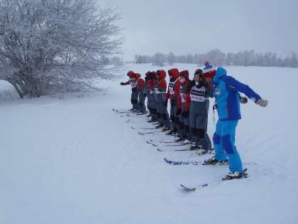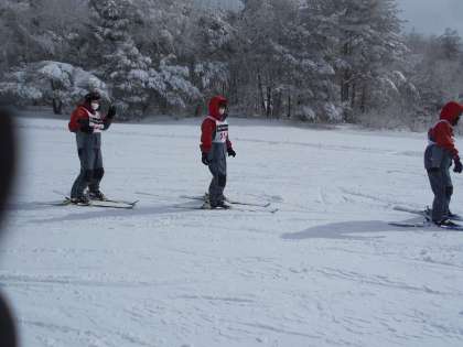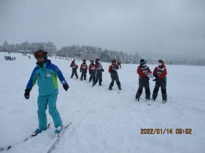 昨晩からの雪は降り止まず、雪の中の講習となりましたが、生徒は元気よくゲレンデに向かいました。