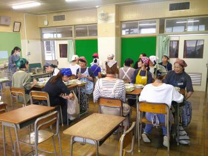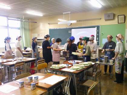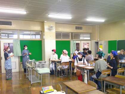 給食センター元横山の吉川様からは、給食についての詳しいお話があり、代わる代わる配膳をして準備をしていました。