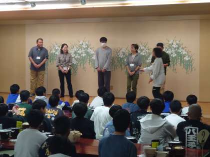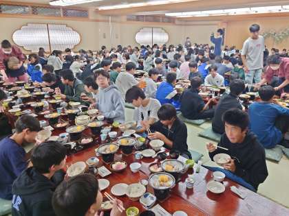 2日目、最終日がスタートしました。参加者全員元気です。朝食を食べ、ちょっと早い閉校式を行いました。お世話になった方々に感謝を伝えました。この後、忍野八海に向かい、ウォークラリーを行います。