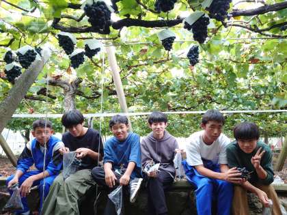 勝沼「一古園」に到着。ぶどう狩り食べ放題です。大ぶりの巨峰だったので、たくさん食べた子でも2房が最高でした。これで今回の富士山自然体験教室の全行程が終わりました。談合坂SAを出発するときに最終メールを流します。
