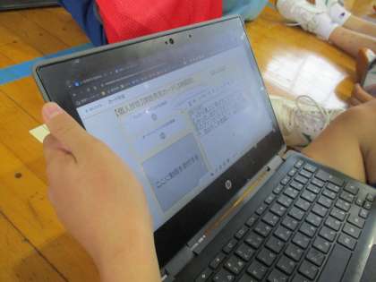 まさに、個別最適な学びです。生徒はアンダーハンドパスとオーバーハンドパスを練習します。ルーブリックを利用して自己分析し、自分に合ったレベルの練習をします。また、クロムブックを利用して動画で練習方法も確認します。まとめでは各自のプレーを動画で撮影し、それをもとに振り返ります。主体的に生徒は動き、1時間で見違えるほど上達していました。