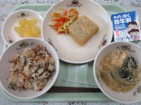 今日の給食の献立は、・ご飯・鶏肉の唐揚げ・大歳のごっつお・じゃがいものみそ汁・牛...