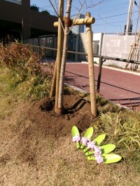 いよいよ明日行う「開校6周年記念植樹セレモニー」に向けて、立派な桜の木を5本植...