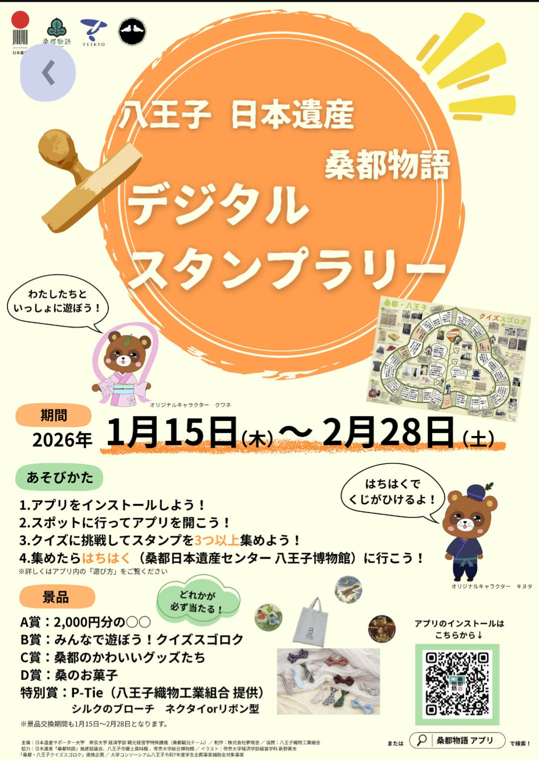 【開催期間】2026年1月15日(木)~2月28日(土) 【遊び方】専用アプリをダウンロードしてスポットに行き、クイズに挑戦してスタンプを3つ以上集めると景品がもらえます。