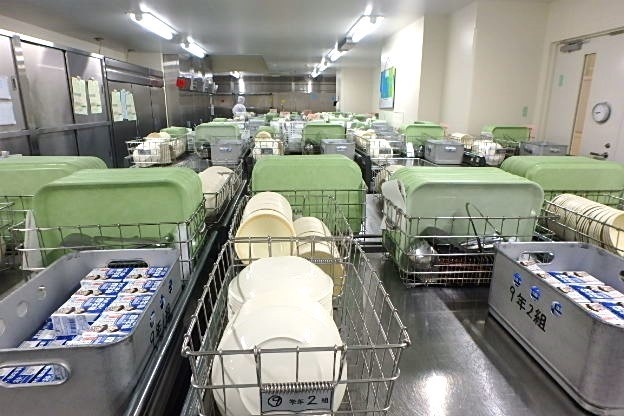 もう一枚は給食の配缶が終わり、いよいよ出発というところのワゴンプールです。