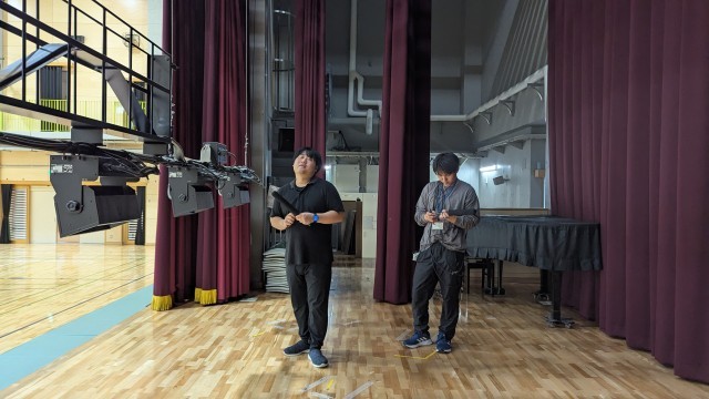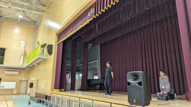 今日は、先生方が音響設備のセッティングを確認しました。マイクやスピーカーの位置や向きなど、よりよい発表となるように細部にこだわって調整しています。大人も本気です。