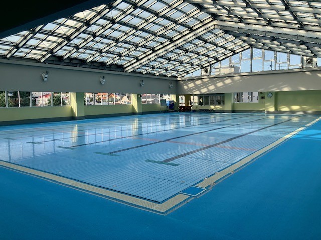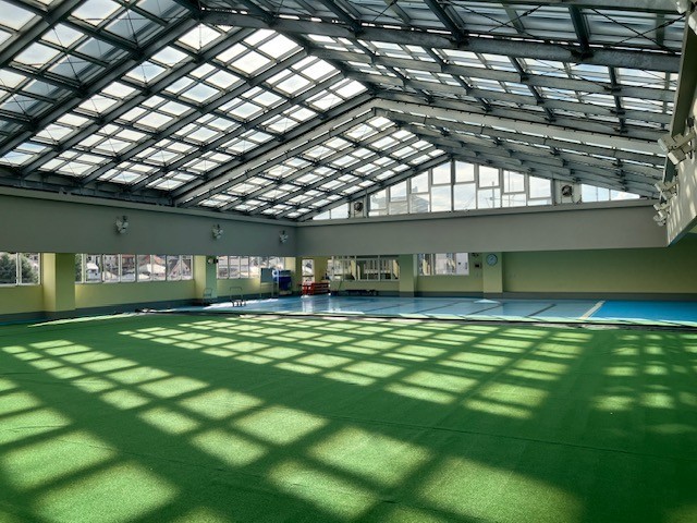 プールも衣替え 公開日 2025/10/03 更新日 2025/10/03 今日のできごと 10月になり朝晩は随分と涼しくなりました。まだ日中は気温も上がり、衣替えも移行期間ですが、プールエリアは衣替え中。先週、全学年のプールの授業が無事に終了しました。今日は、プールの床を一番上まで上げ、その上に人工芝を敷いています。来週からはプールフロアが人工芝エリアとして使えるようになります。