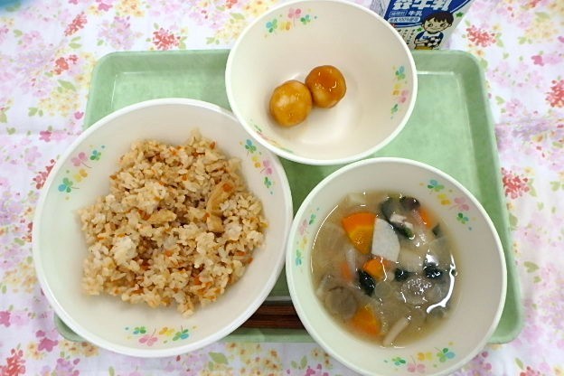すすきや団子や里芋をお供えするので、今日は里芋が入った芋の子汁と、みたらしのたれをかけたお月見団子をつくりました。