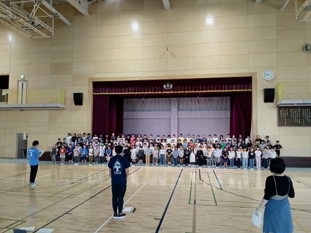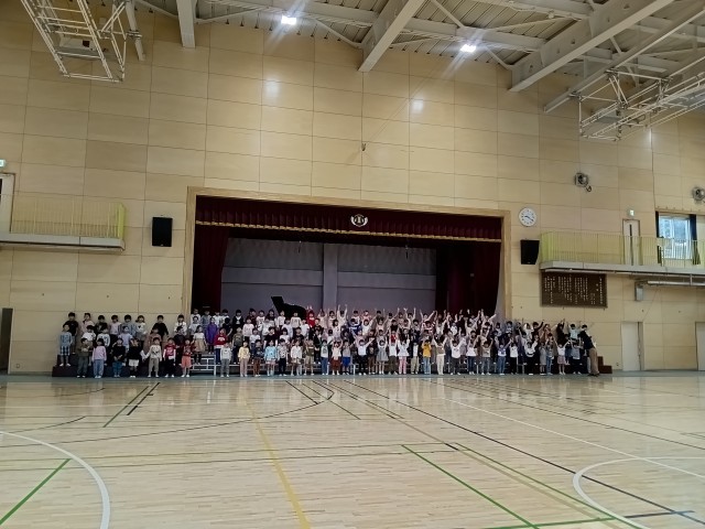 【全校】フェスティバル練習 公開日 2025/10/14 更新日 2025/10/14 今日のできごと 来週末に開催するいずみの森フェスティバルに向けて各学年の発表が着々と仕上がってきています。初めて発表する1年生は、1年生らしく元気に可愛らしく表現しています。3回目となる3年生は、さすがです。素早く整列し、練習時間を無駄なく集中しています。どの学年の発表も楽しみです。