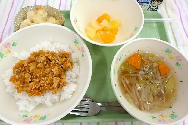 タコライスは本来キャベツは別に盛り付けますが、給食では混ぜて作りました。